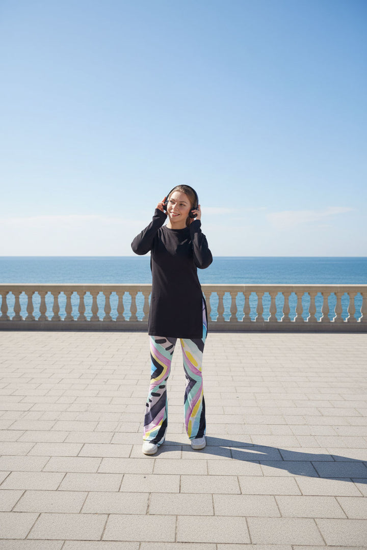 Move with freedom in our Printed Flared Pants, crafted from endurance-ready polyester with a sleek dri-fit finish. Designed to wick away sweat and keep you cool, these pants feature bold, playful prints that transform your athleisure look from basic to standout. With maximum comfort, stretch, and a fun edge, they’re perfect for making movement stylish.