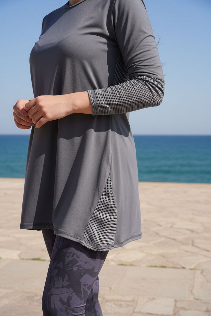 Dark Grey Pulse Mesh Top